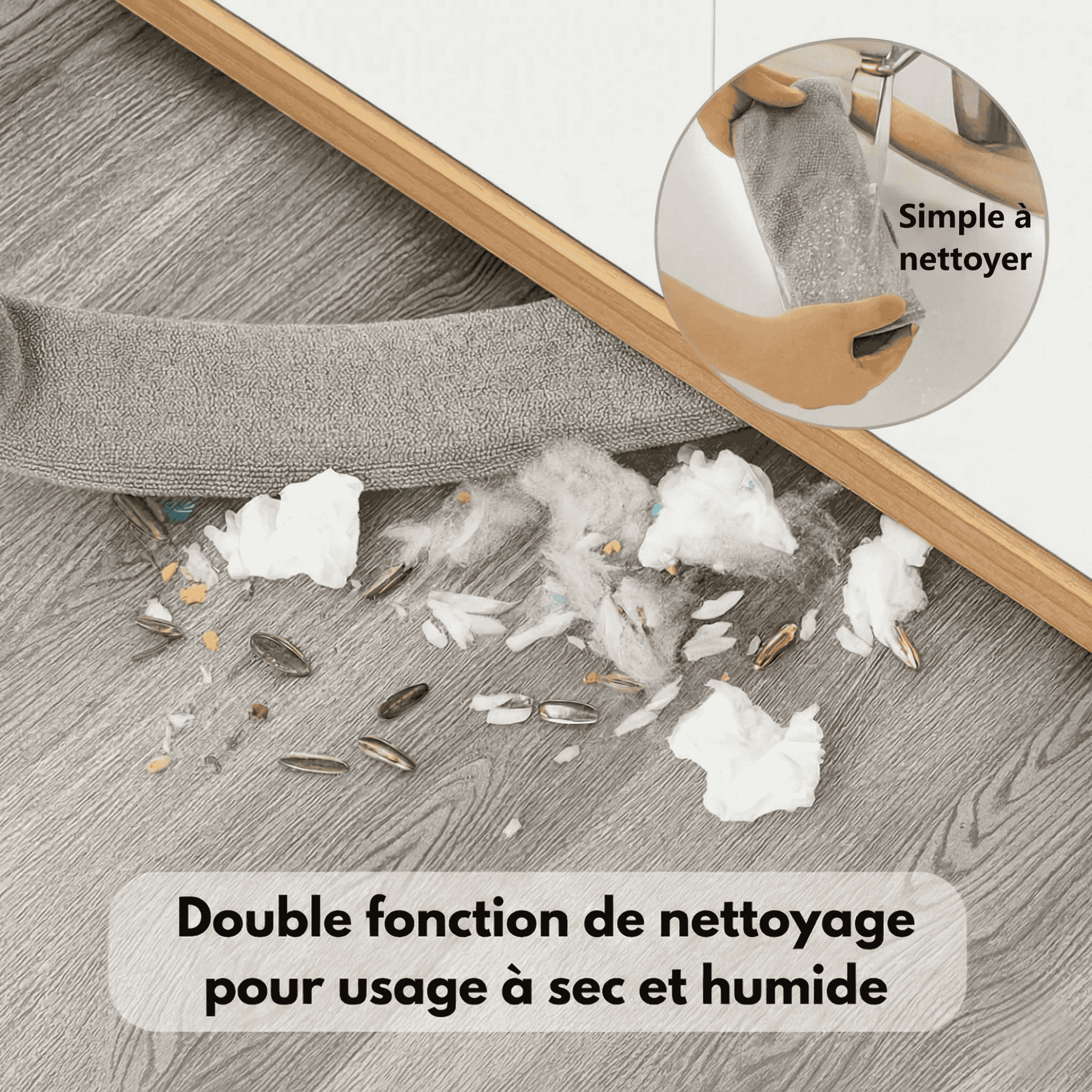 À sec pour ramasser la poussière, les poils et les miettes