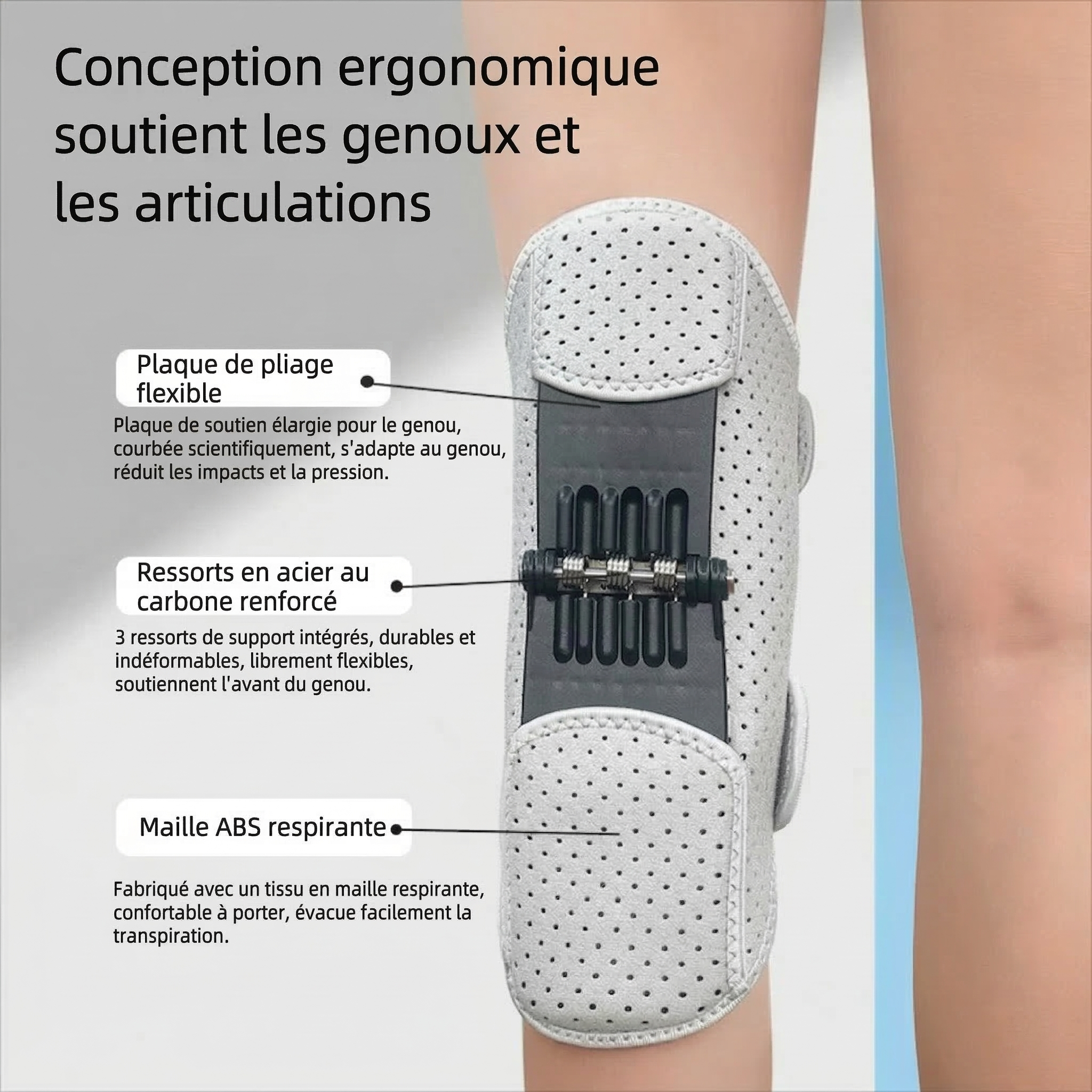 FlexPower™ est la première genouillère au monde dotée d'un système de ressorts intelligent, conçu pour décupler votre force de mouvement et alléger chaque pas.